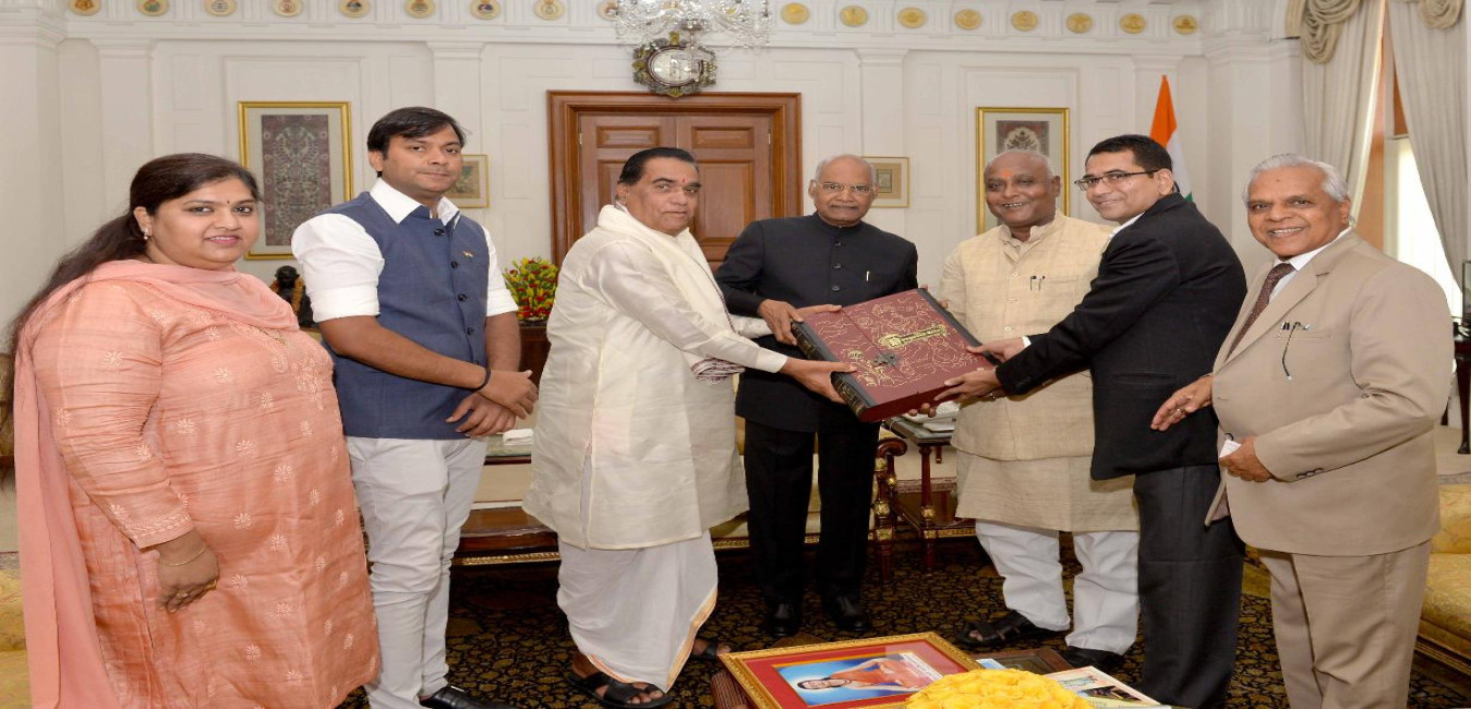 Shri Ramji Gupta with others meeting with the President of India, Shri Ram Nath Kovind, at Rashtrapati Bhavan on June 11, 2018.