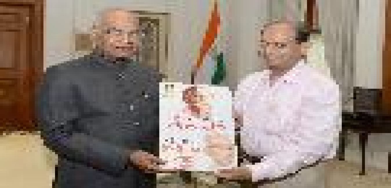 Shri S.K. Mishra, Padmabhushan Awardee and former Principal Secretary to the Prime Minister presents a copy of his book 'Flying in High Winds' to the President of India, Shri Ram Nath Kovind, at Rashtrapati Bhavan on July 02, 2018.