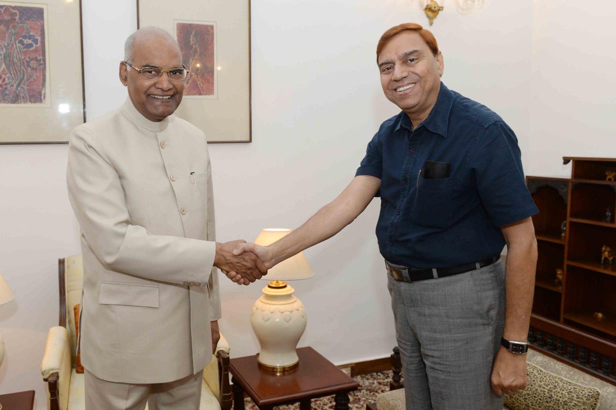 Shri Ashok Beri and Dr. Surender Kumar meeting with the President of India, Shri Ram Nath Kovind, at Rashtrapati Bhavan on June 14, 2018.
