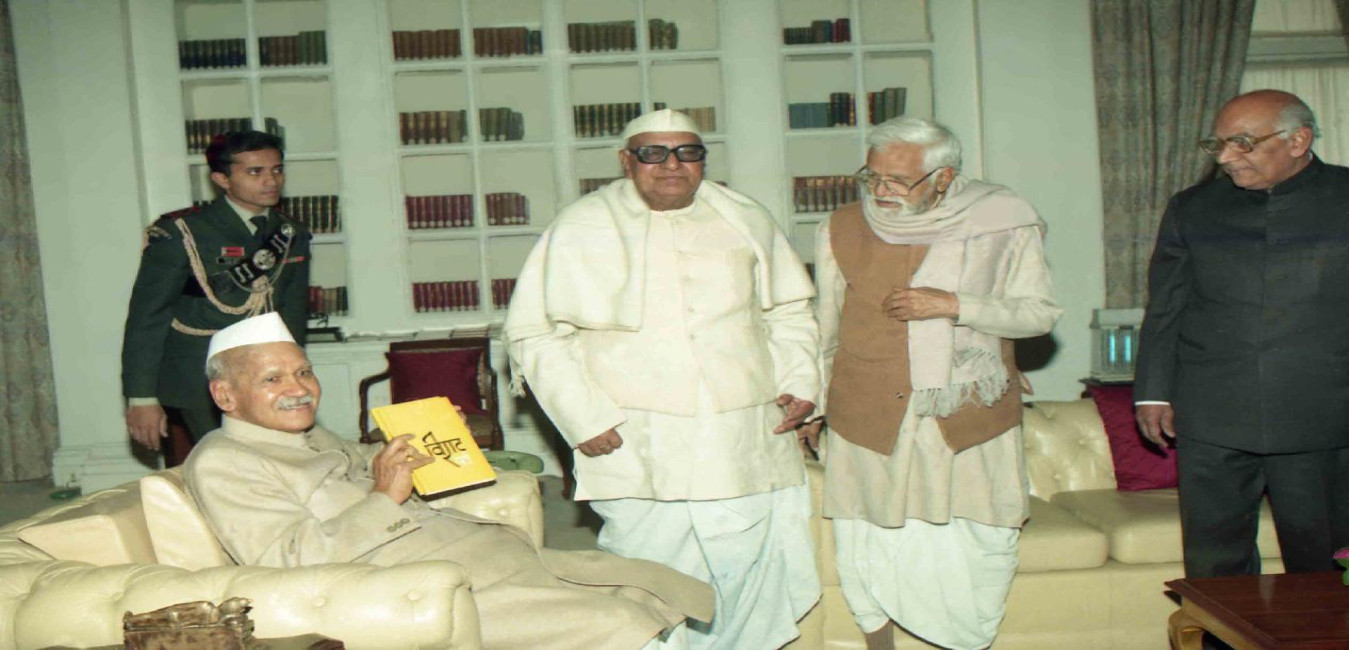The President of India, Dr. Shankar Dayal Sharma attending Shabad Kirtan and paying tributes to Guru Gobind Singh Ji on his birth anniversary, at Rashtrapati Bhavan in New Delhi on December 27, 1995.
