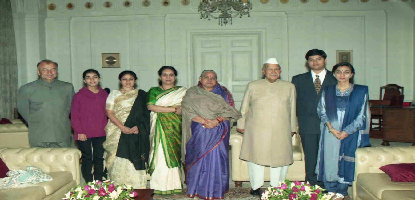 The President of India, Dr. Shankar Dayal Sharma meeting with Shri S.K. Shinde with family at Rashtrapati Bhavan in New Delhi on December 30, 1995.