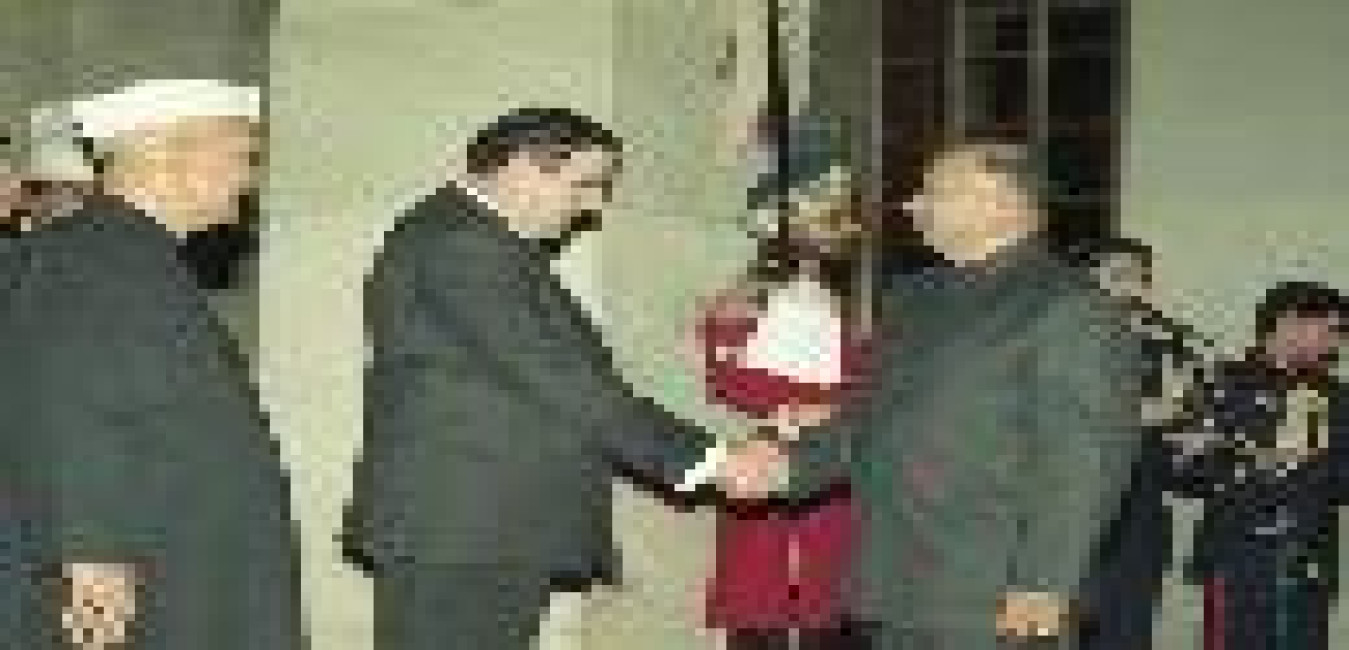 The President of India, Dr. Shankar Dayal Sharma receiving H.E. Mr. Emomali Sharipovich Rakhmonov, President of the Republic of Tajikistan, at the Ceremonial Reception, at Rashtrapati Bhavan in New Delhi on December 11, 1995.