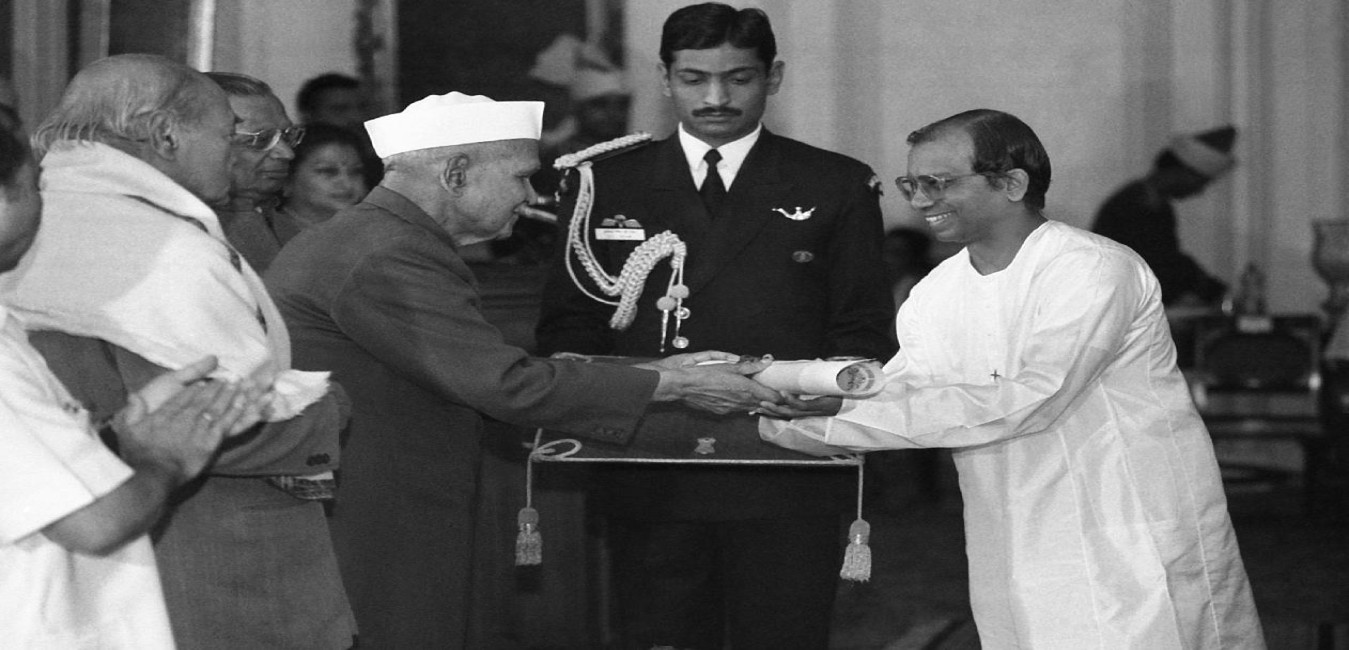 The President of India, Dr. Shankar Dayal Sharma presenting Kabir Puraskar at Rashtrapati Bhavan in New Delhi on November 19, 1995.