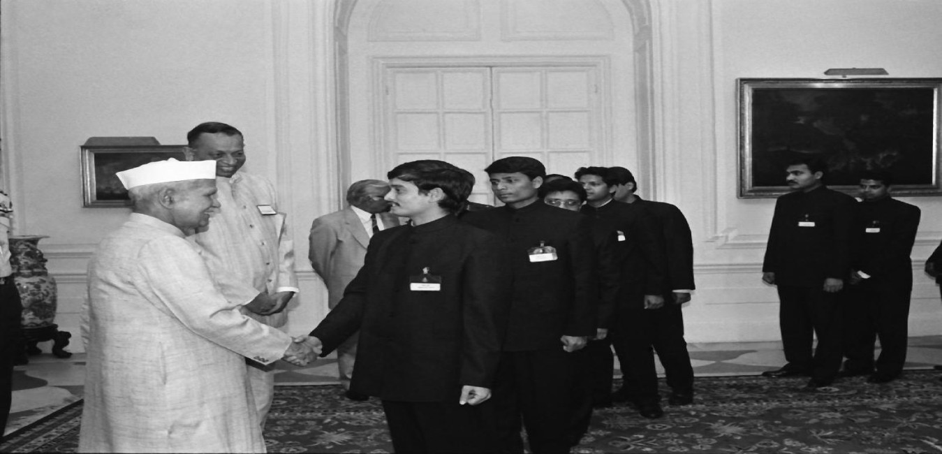 The President of India, Dr. Shankar Dayal Sharma presenting the National Awards for Child Welfare for the year 1994 at Rashtrapati Bhavan in New Delhi on April 03, 1995.