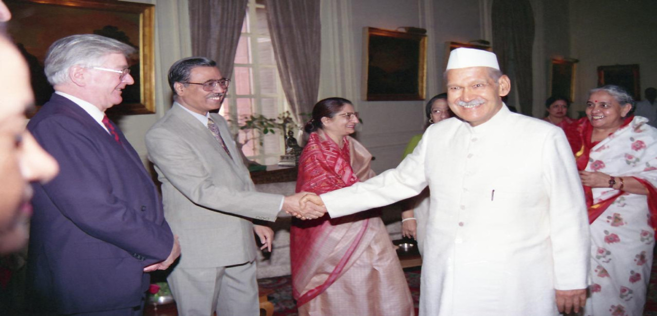 The President of India, Dr. Shankar Dayal Sharma hosting Lunch to Jury members of Indira Gandhi Award at Rashtrapati Bhavan in New Delhi on November 18, 1994.