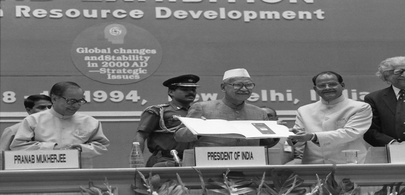 The President of India, Dr. Shankar Dayal Sharma addressing the World Conference 'Global Changes and Stability in 2000 AD-Strategic Issues' at Vigyan Bhavan in New Delhi on November 08, 1994.