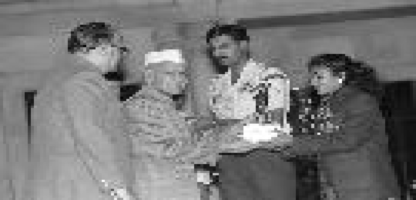 The President of India, Dr. Shankar Dayal Sharma meeting with Shri Shiv Charan Gupta, Ex-MP with Awaredees & Office bearers of Jan Jagriti Samaj at Rashtrapati Bhavan in New Delhi on July 27, 1994.