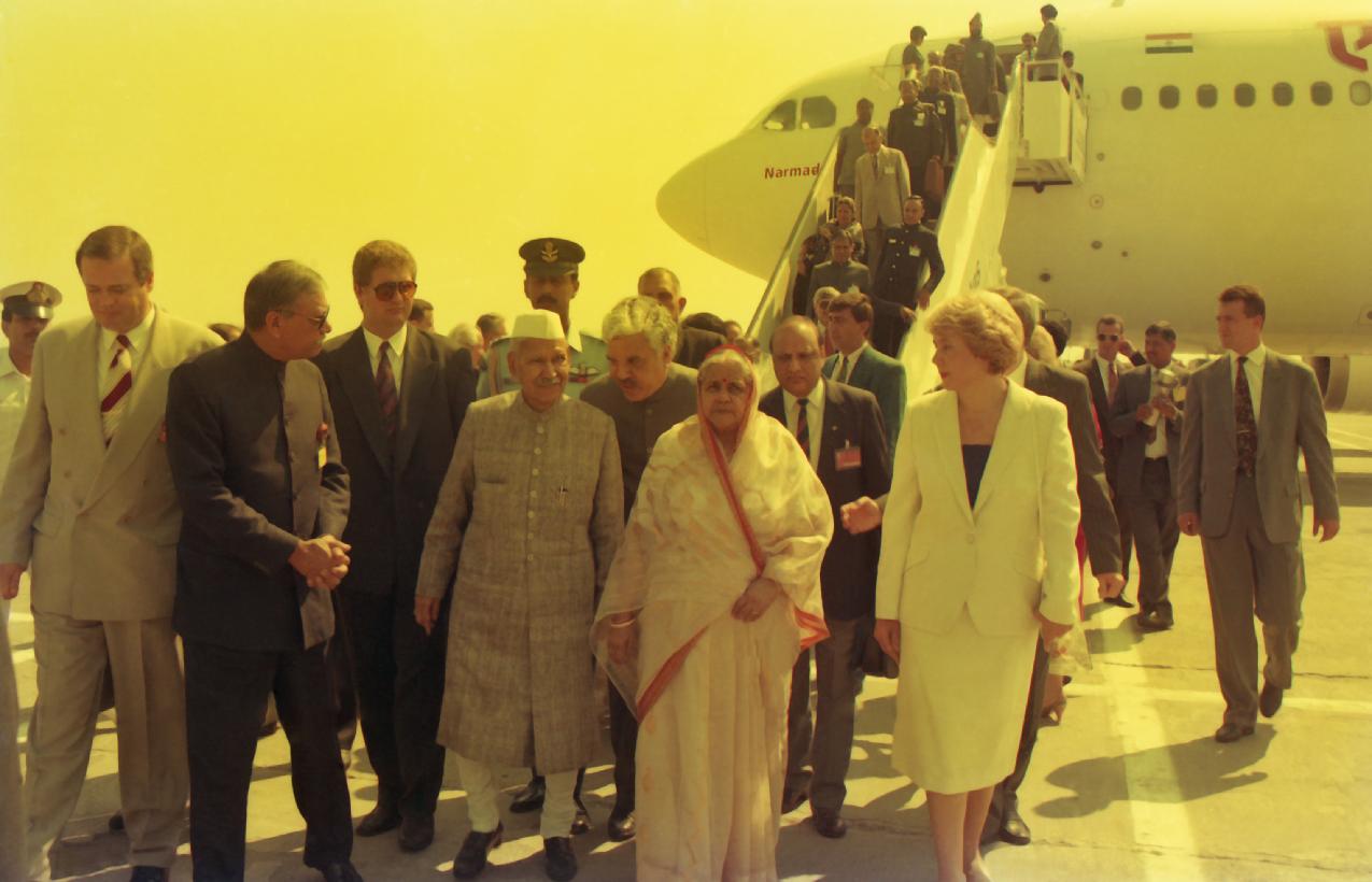 The President of India, Dr. Shankar Dayal Sharma arrives at Bucharest airport in Romania on May 30, 1994.