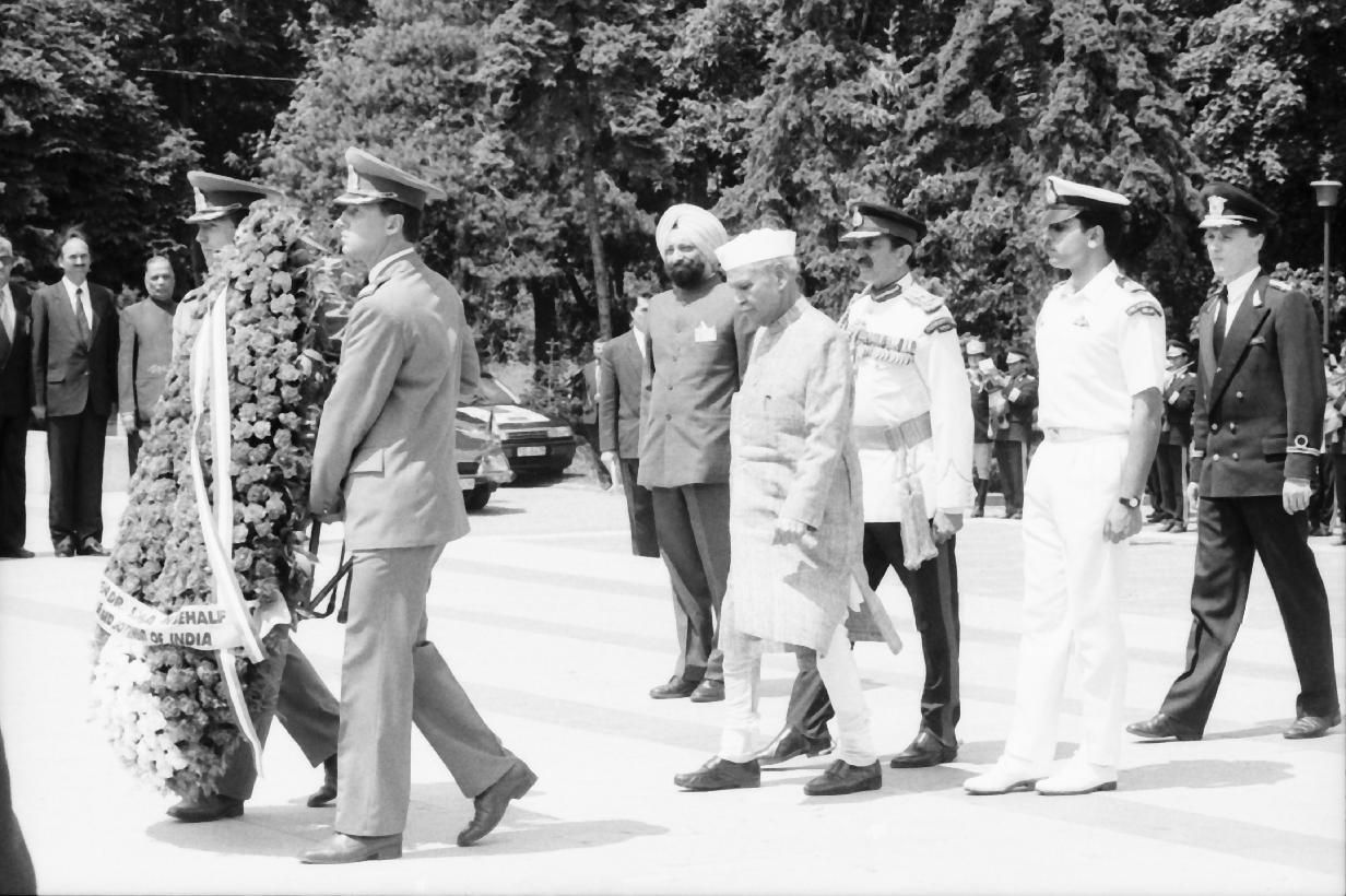 The President of India, Dr. Shankar Dayal Sharma laying wreath at the Memorial of the Unknown Soldier, at Sofia, in Bulgaria on May 27, 1994.
