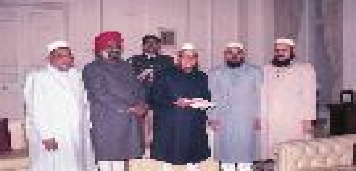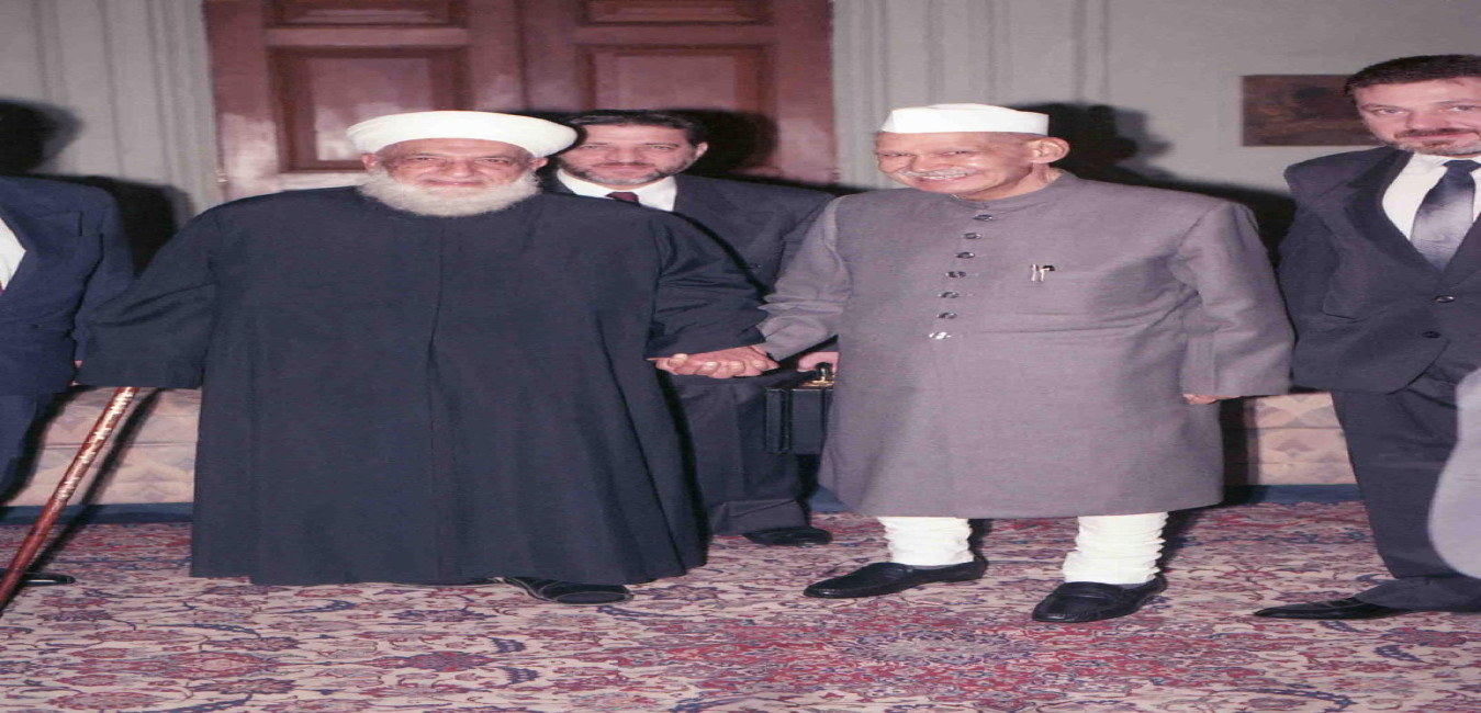 The President of India, Dr. Shankar Dayal Sharma meeting with Dr. Sheikh Ahmed Kiftaro, Grand Mufti of Syria at Rashtrapati Bhavan in New Delhi on January 18, 1994.