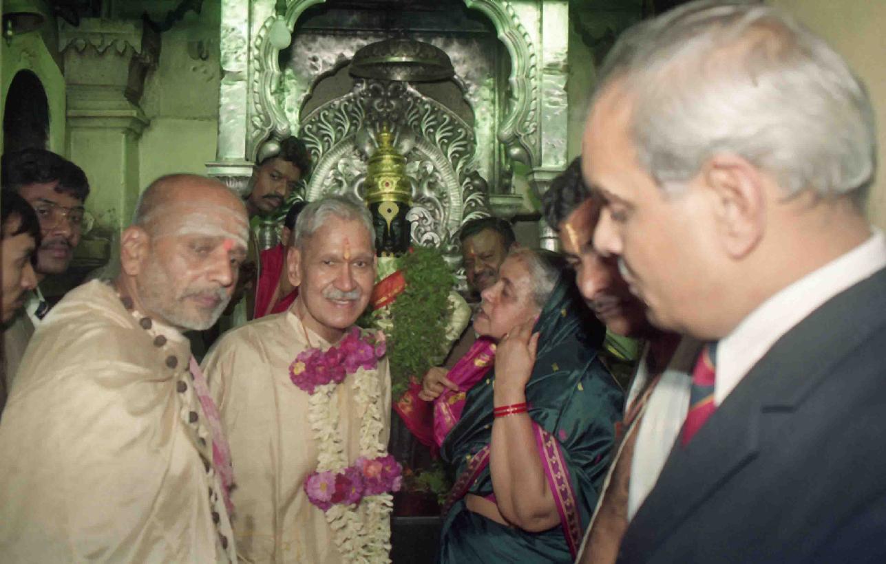 The President of India, Dr. Shankar Dayal Sharma offering puja, at Vithal Temple, at Pandharpur, Maharashtra on January 17, 1994.