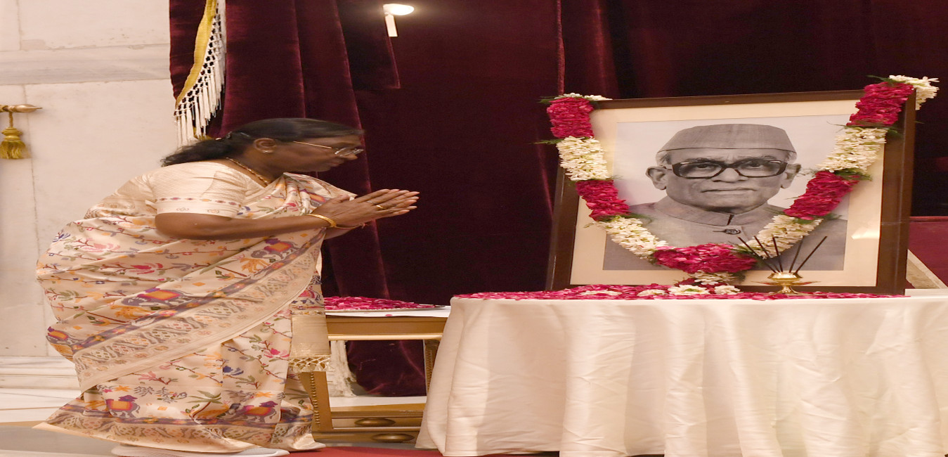 The President of India, Smt Droupadi Murmu paid floral tributes to Shri Neelam Sanjiva Reddy, former President of India, on his birth anniversary at Rashtrapati Bhavan on May 19, 2024.