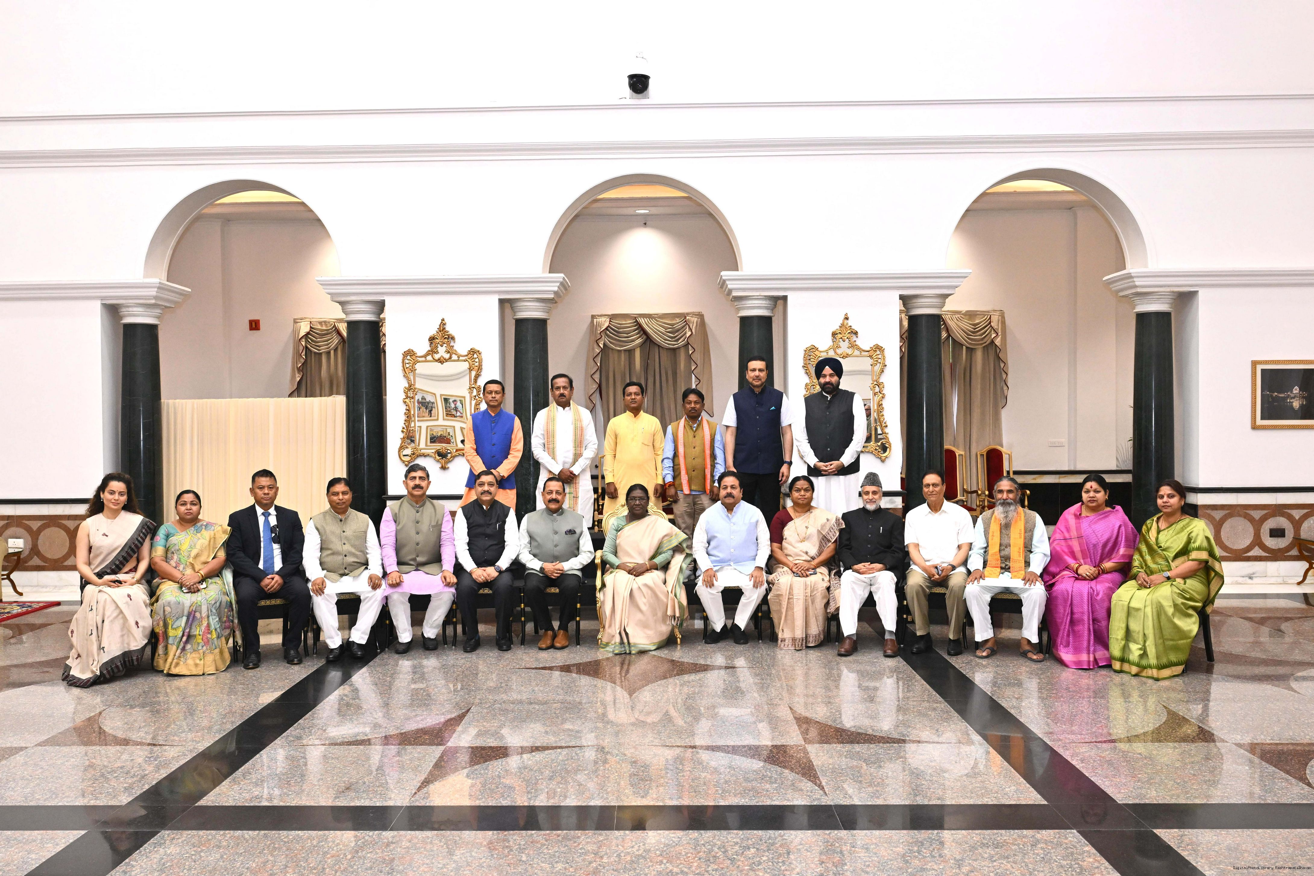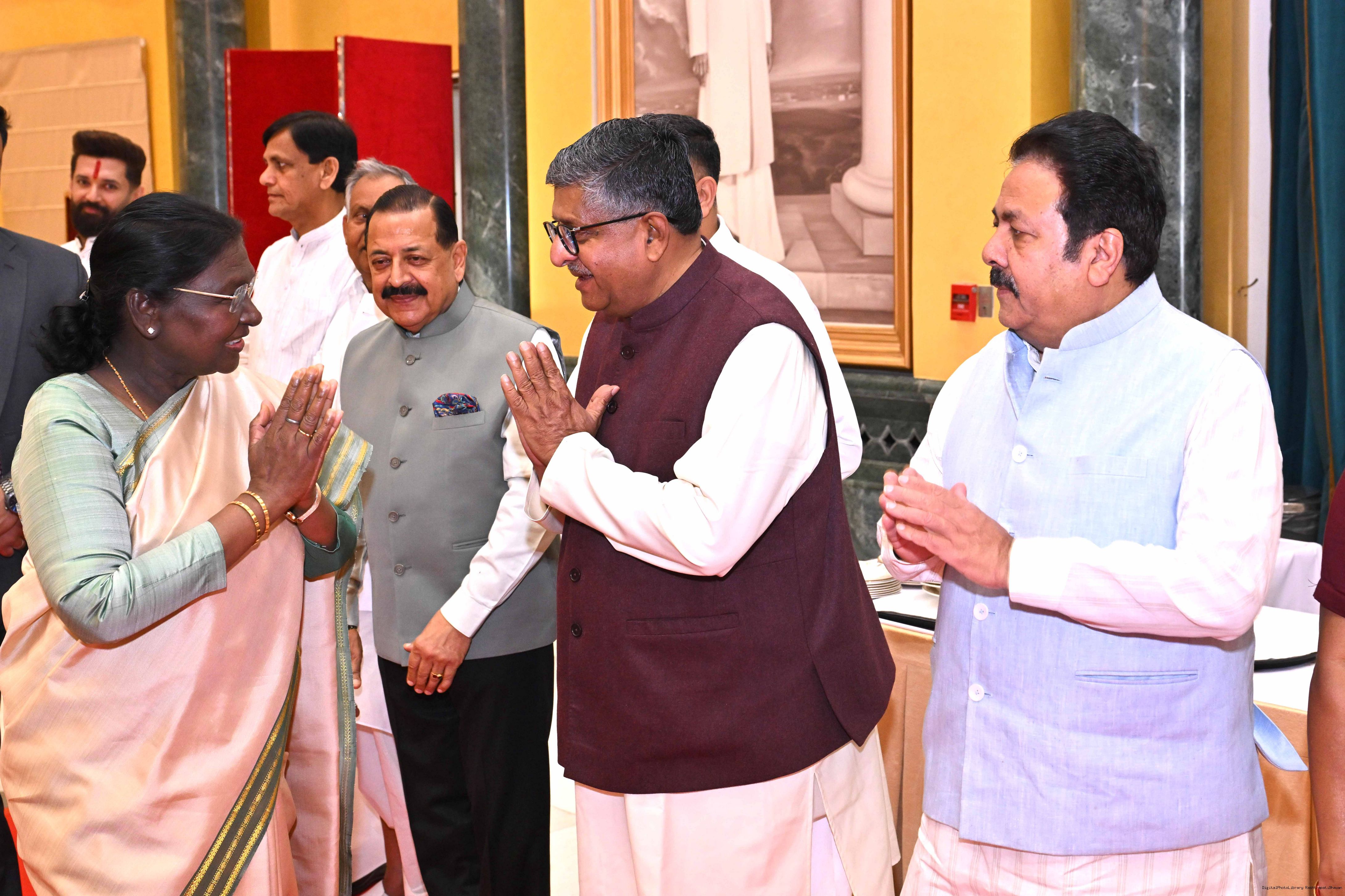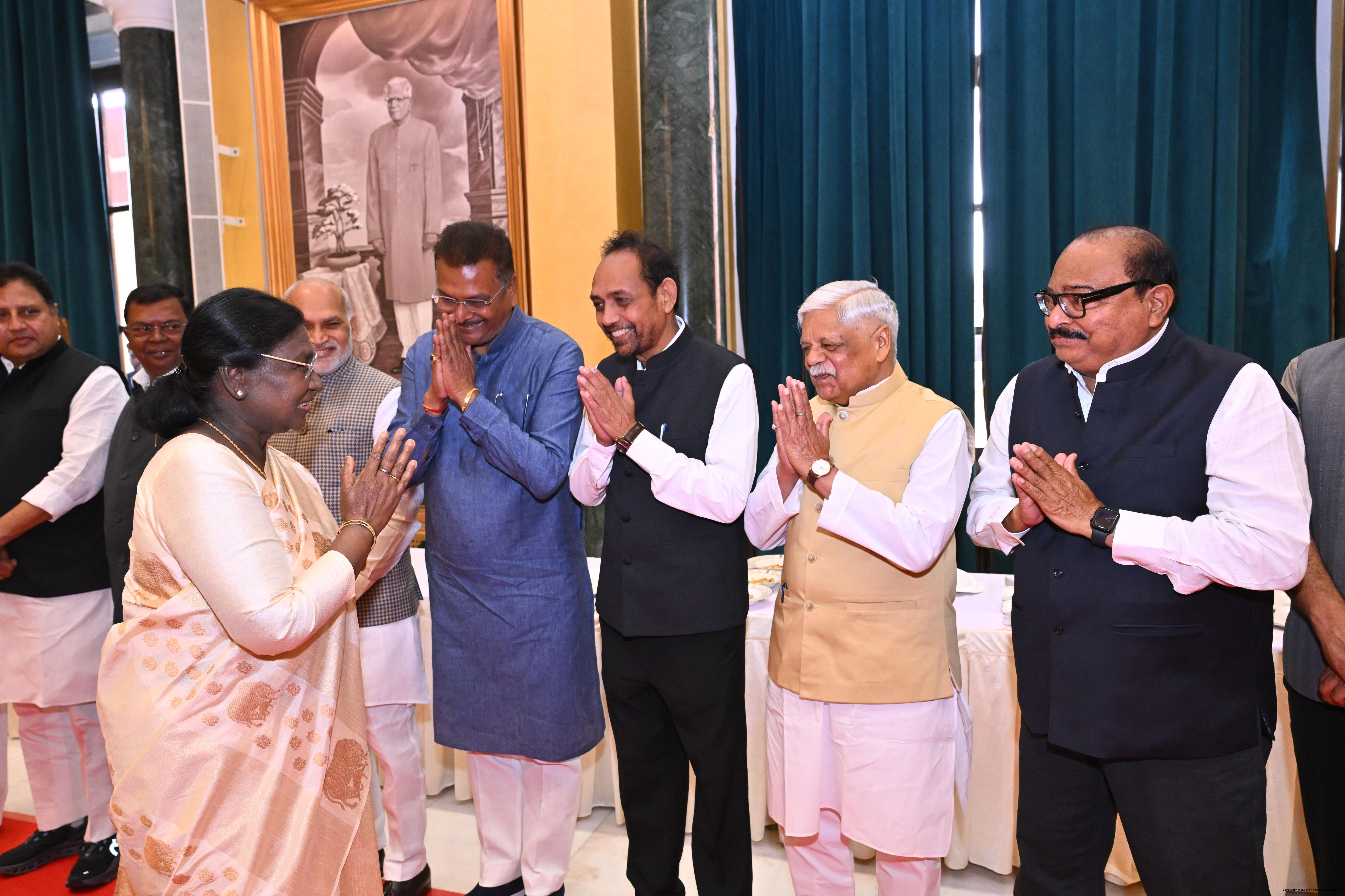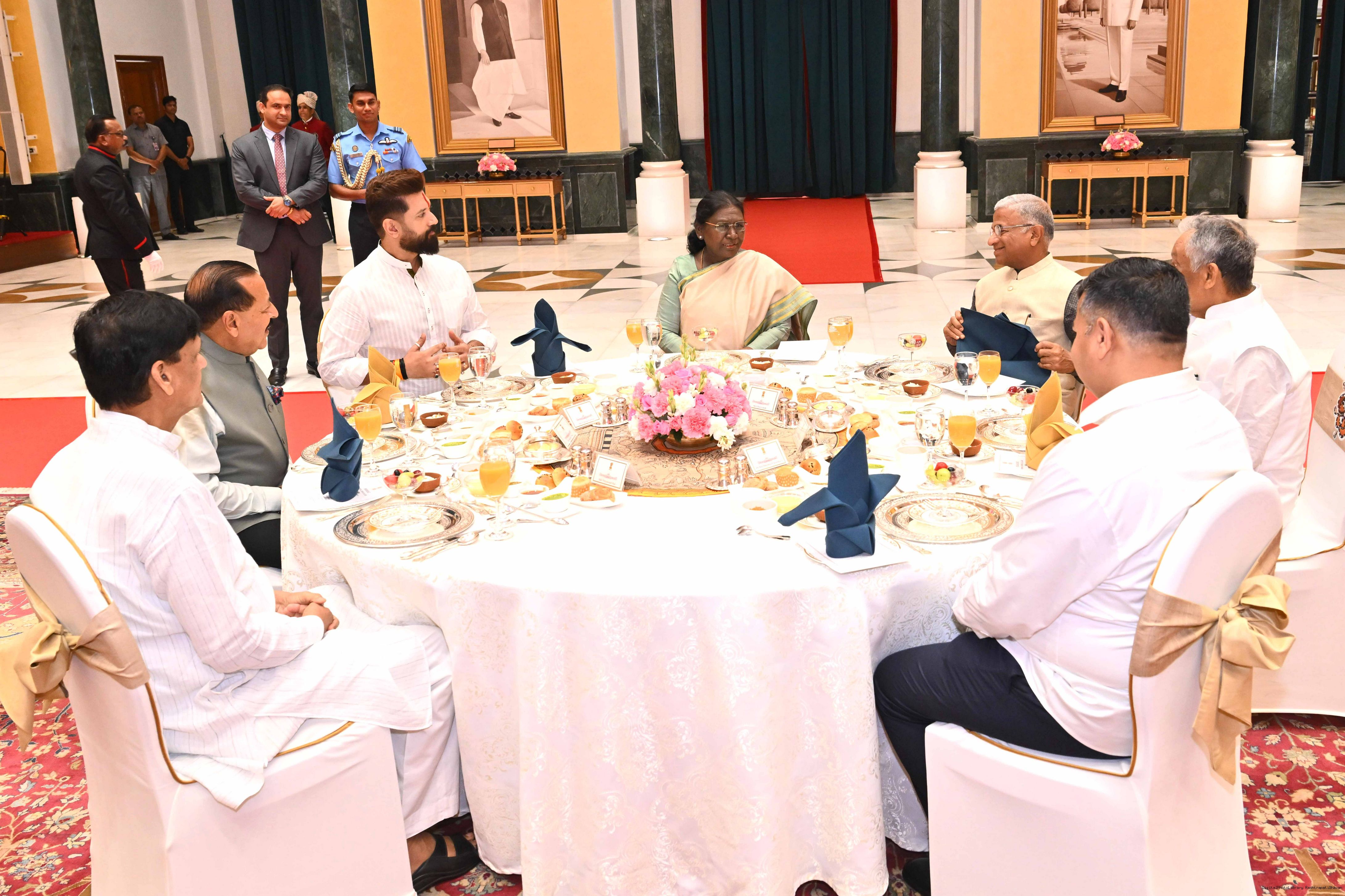 The President of India, Smt Droupadi Murmu hosted Members of Parliament from Uttar Pradesh, Rajasthan, Mizoram, Nagaland, Tripura, Sikkim and Jharkhand for breakfast at Rashtrapati Bhavan Cultural Centre on March 24, 2026.