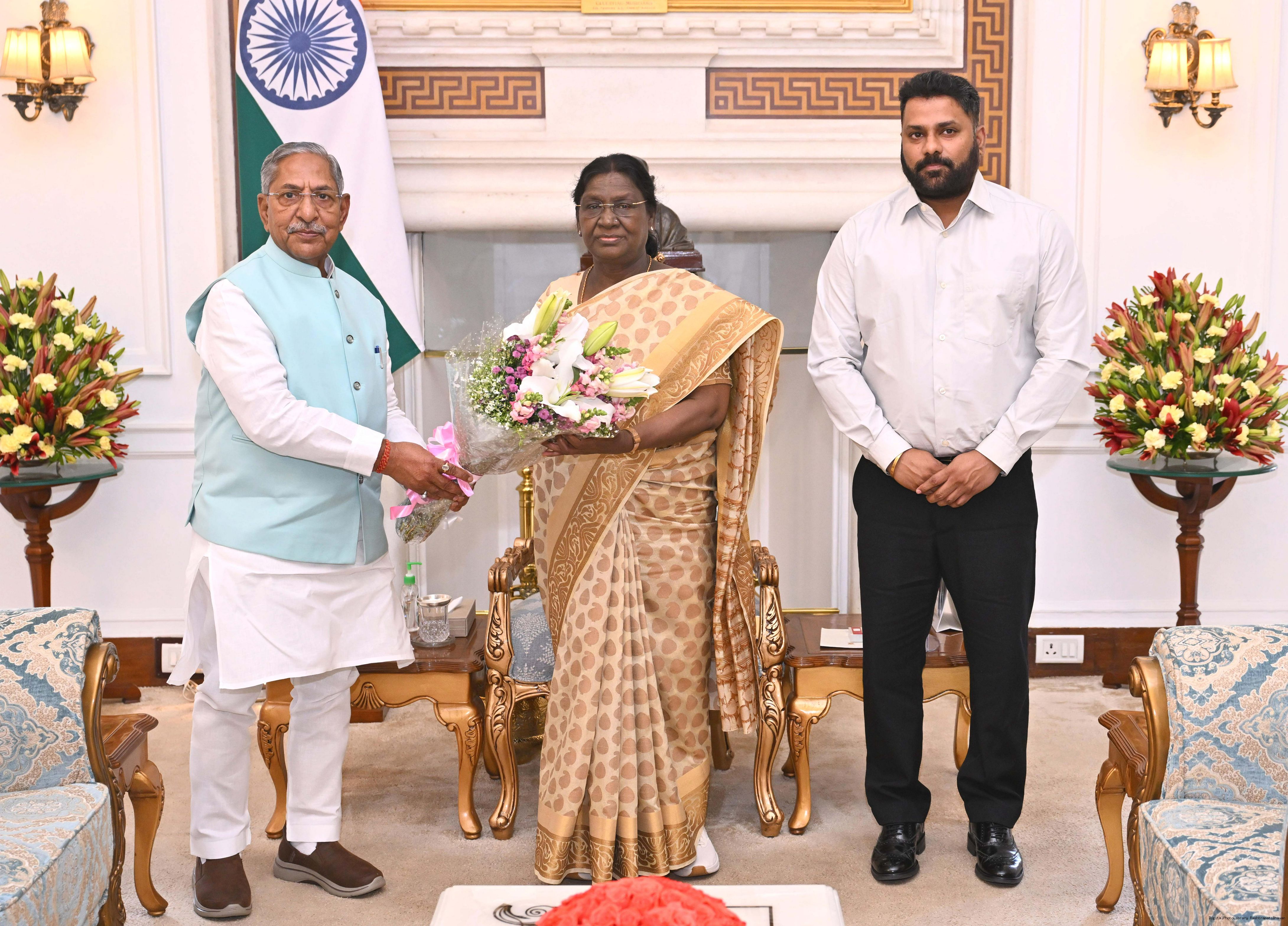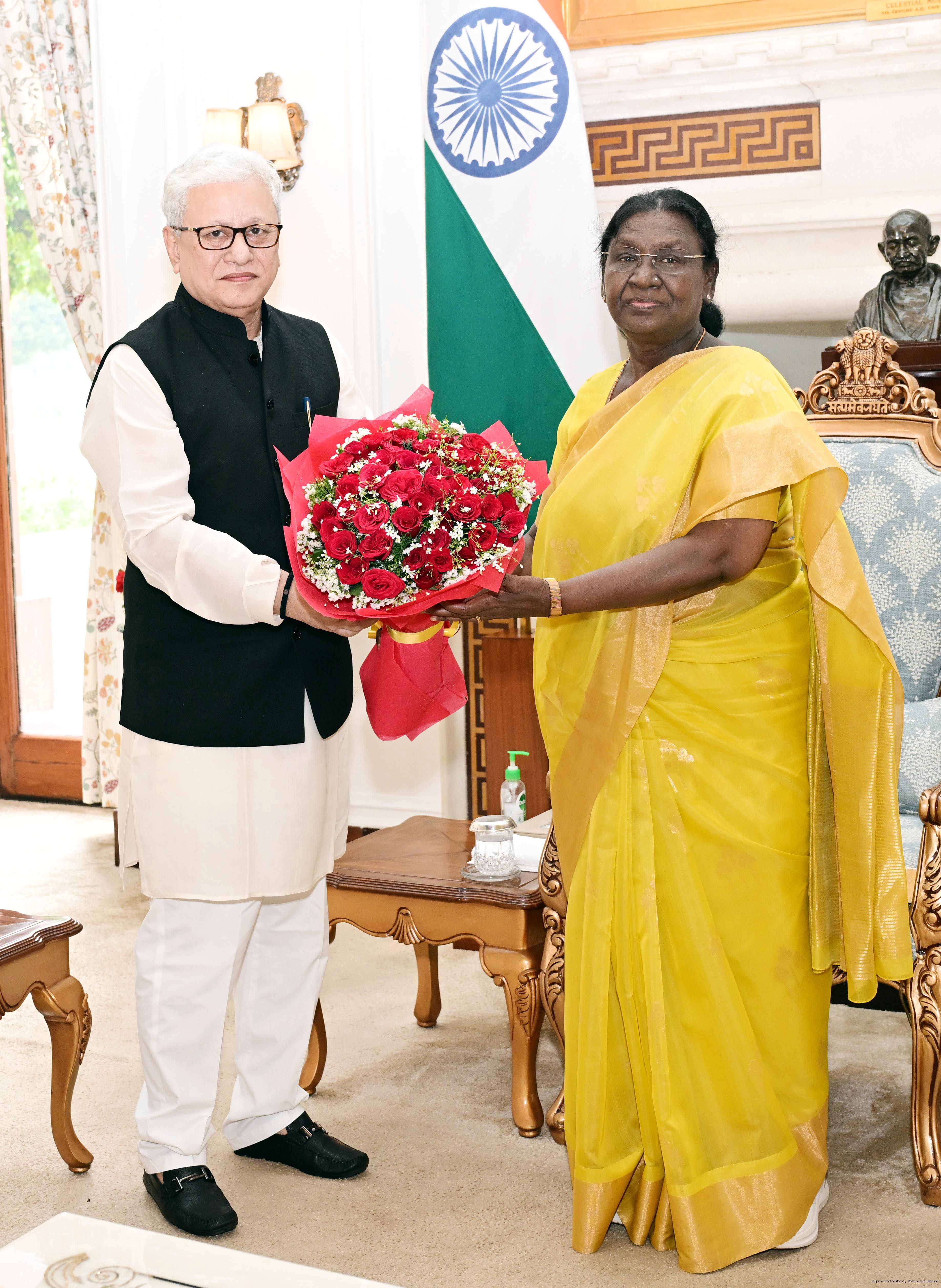 The Governor of Bihar, Lt Gen Syed Ata Hasnain (Retd.), along with his spouse Smt Sabiha Hasnain called on the President of India, Smt Droupadi Murmu at Rashtrapati Bhavan on March 25, 2026.