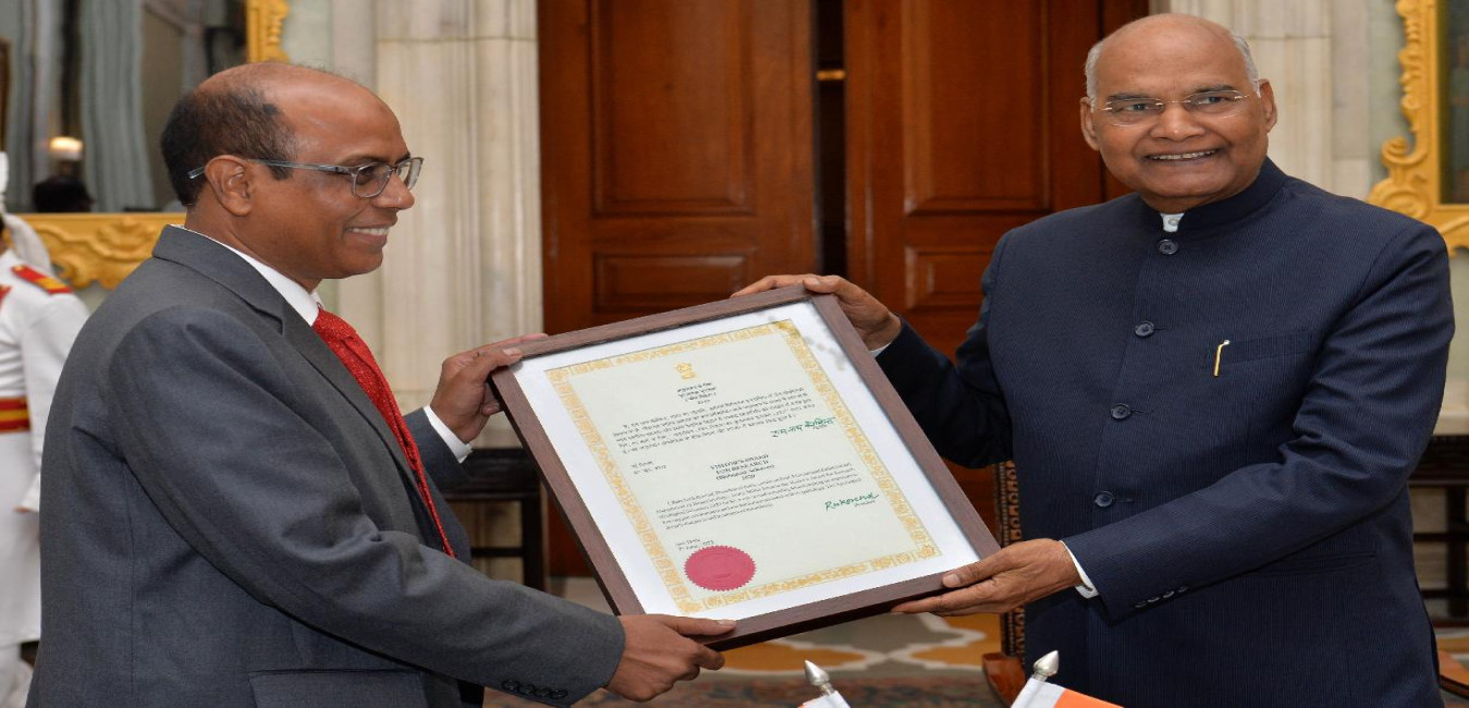 The President of India, Shri Ram Nath Kovind presenting the Visitor s Award 2020 for Research (Biological Sciences) to Prof. Mohammad Zahid Ashraf, Department of Biotechnology, Jamia Millia Islamia for his research on hypoxia-induced thrombosis, at Rashtrapati Bhavan on June 07, 2022.