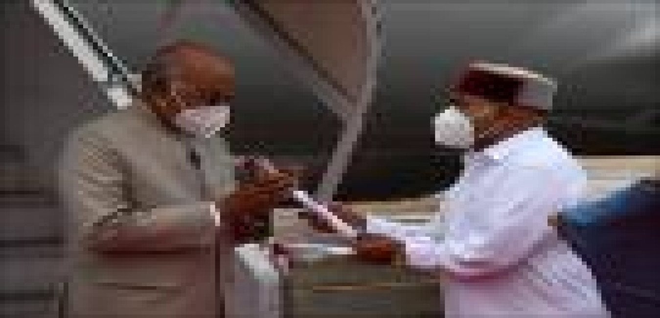 The President of India, Shri Ram Nath Kovind being received by the Lt. Governor of Ladakh, Shri R.K. Mathur, on his arrival, at Leh Air Field on October 14, 2021. The President was accorded a guard of honour on his arrival.