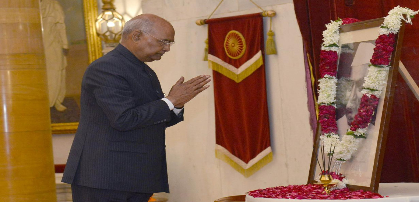 The President of India, Shri Ram Nath Kovind paying floral tributes to the former President of India, Dr. Rajendra Prasad on his birth anniversary, at Rashtrapati Bhavan on December 03, 2019.