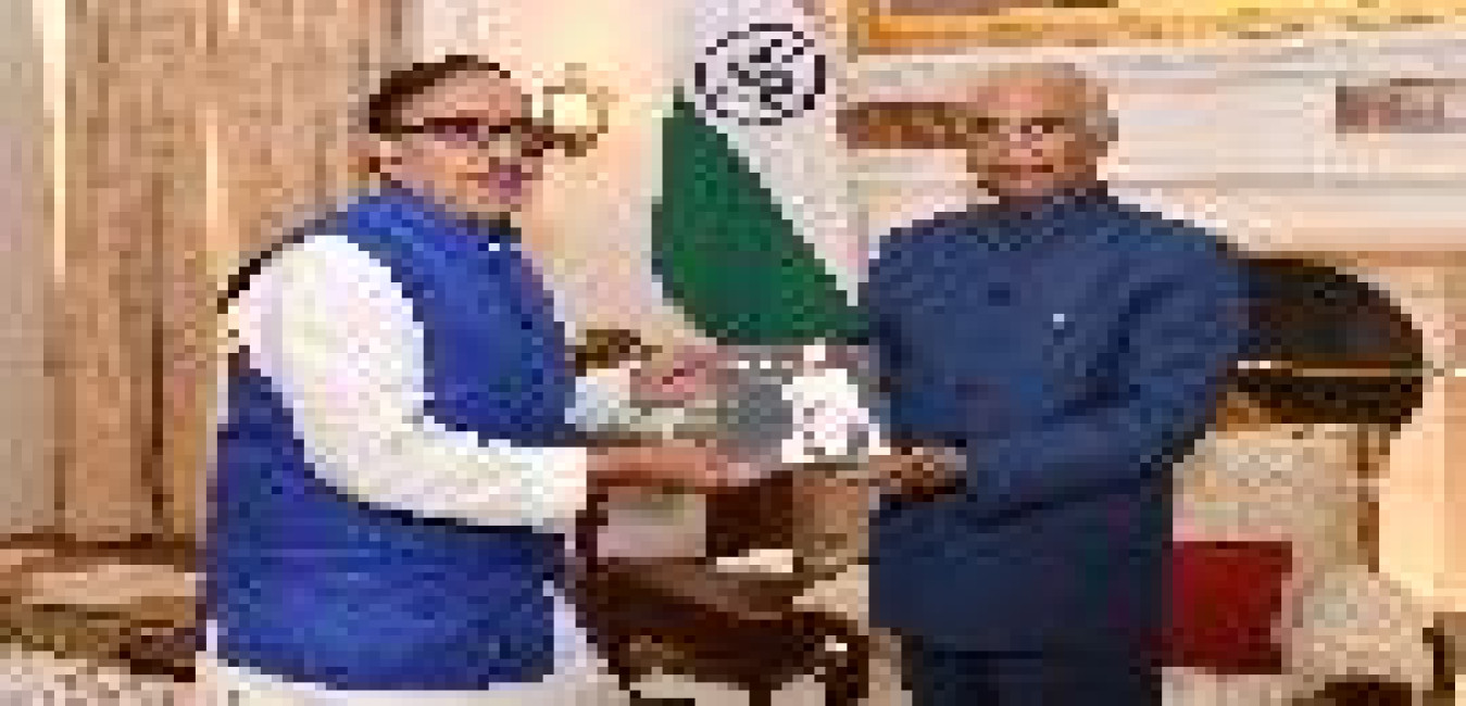 The Minister of Urban Development & Housing, Govt. of Bihar, Shri Suresh Kumar Sharma meeting with the President of India, Shri Ram Nath Kovind, at Rashtrapati Bhavan on June 05, 2019.