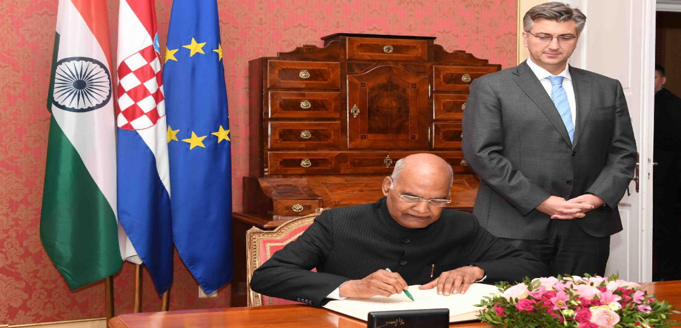The President of India, Shri Ram Nath Kovind signing the Visitor's Book at State Residence Visoka, Zagreb, in Croatia on March 26, 2019.