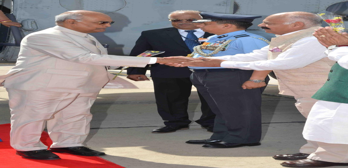 The President of India, Shri Ram Nath Kovind being received by the Governor of Punjab, Shri V.P. Singh Badnore and the Governor of Haryana, Prof. Kaptan Singh Solanki, at Chandigarh Airport on May 20, 2018.