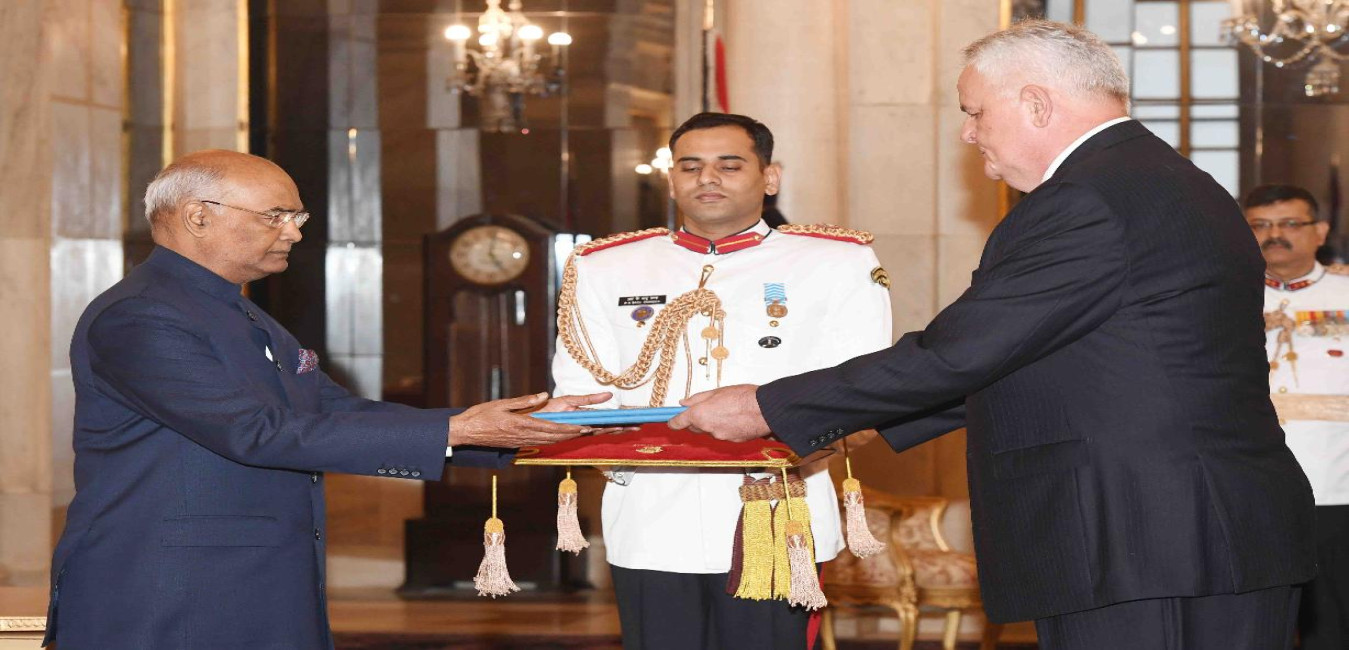 The Ambassador-designate of Croatia, HE Mr. Petar Ljubicic presenting his credentials to the President of India, Shri Ram Nath Kovind, at Rashtrapati Bhavan on October 26, 2017.