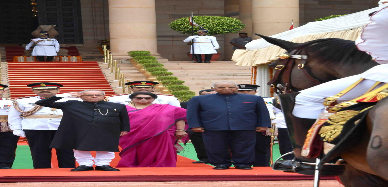 The President of India, Shri Pranab Mukherjee alongwith the President-elect, Shri Ram Nath Kovind in a procession for National Salute from the President's Bodyguard, at forecourt of Rashtrapati Bhavan on July 25, 2017.