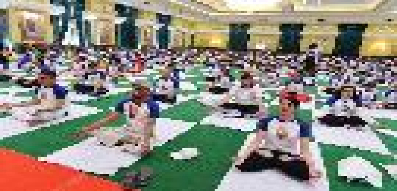 The President of India, Shri Pranab Mukherjee inaugurating the mass yoga demonstration to commemorate the 3rd International Yoga Day, at Rashtrapati Bhavan on June 21, 2017.