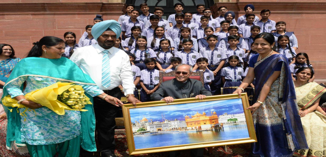 The President of India, Shri Pranab Mukherjee in group photographs with the students and teachers from Mount View Public School, Mohali, at Rashtrapati Bhavan on May 17, 2017.