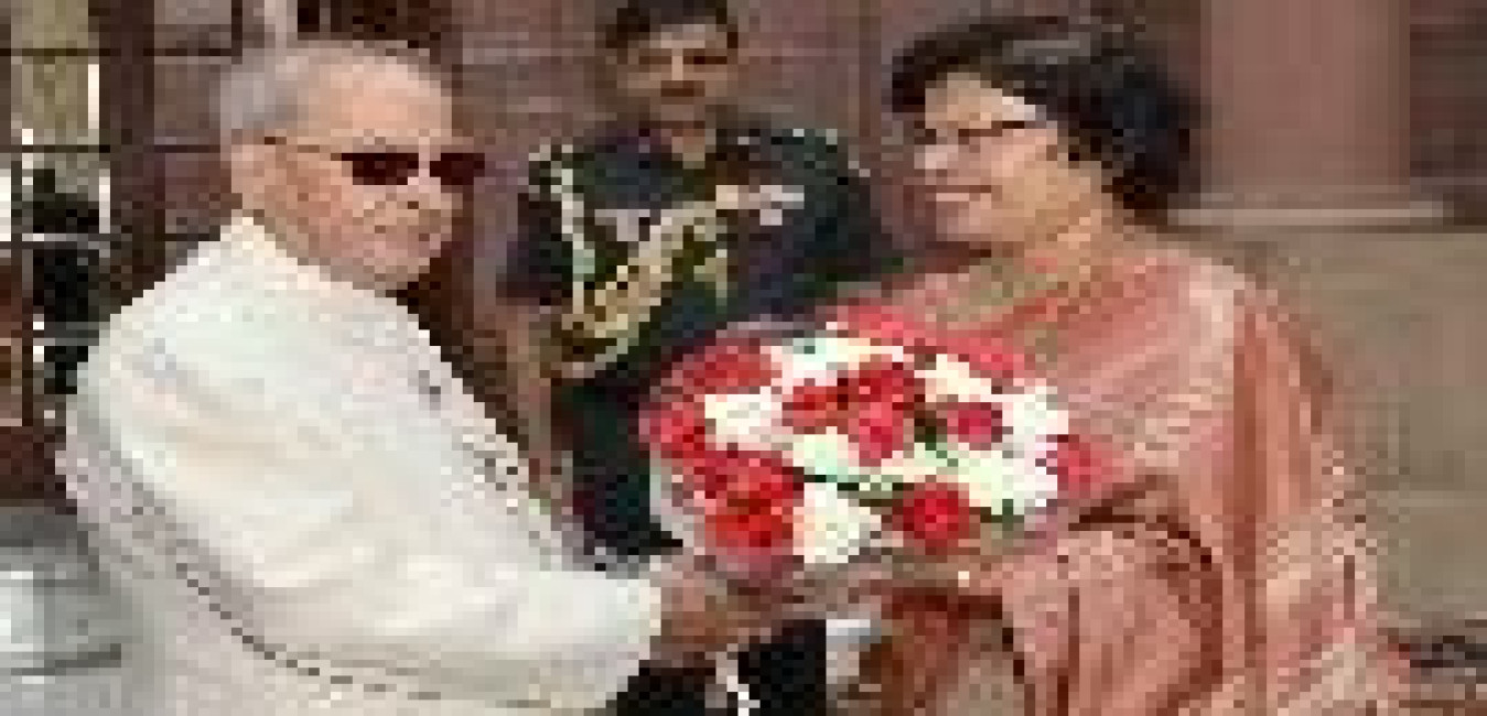 The President of India, Shri Pranab Mukherjee meeting with Smt. Barnali Dutta along with her mother Smt. Bratati Dutta from Kolkata, at Rashtrapati Bhavan on May 01, 2017.
