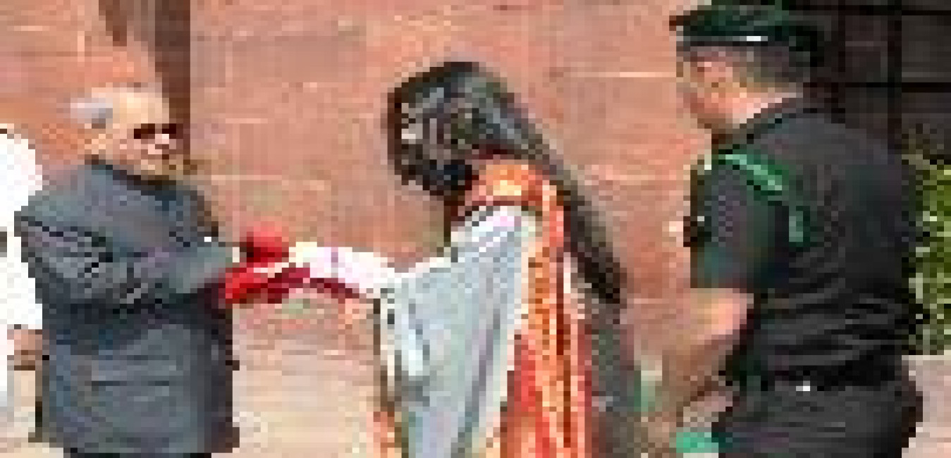 The President of India, Shri Pranab Mukherjee meeting with Shri Debasish Mukherjee along with his wife Smt. Chhanda Mukherjee, daughter Smt. Debasmati Mukherjee and son-in-law Maj. Ritwick Paul, at Rashtrapati Bhavan on March 10, 2017.