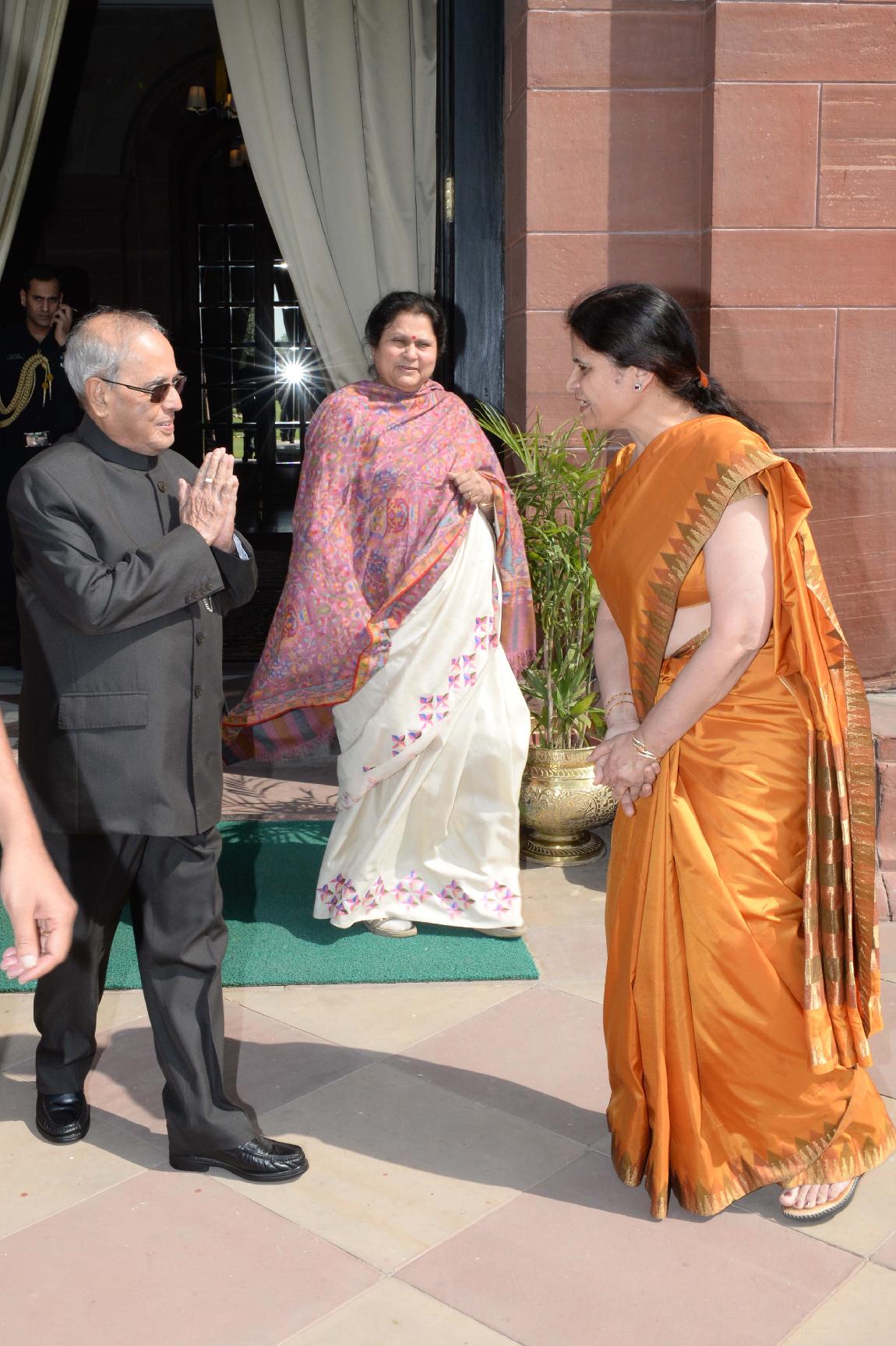 The President of India, Shri Pranab Mukherjee meeting with Dr. Ambika Dhiman, Ayurveda Consultant, Ayush Wellness Clinic, President's Secretariat along with her husband Dr. Arjun Dhiman and received their Research Work on Ayurveda Toxicology, at Rashtrapati Bhavan on March 01, 2017.