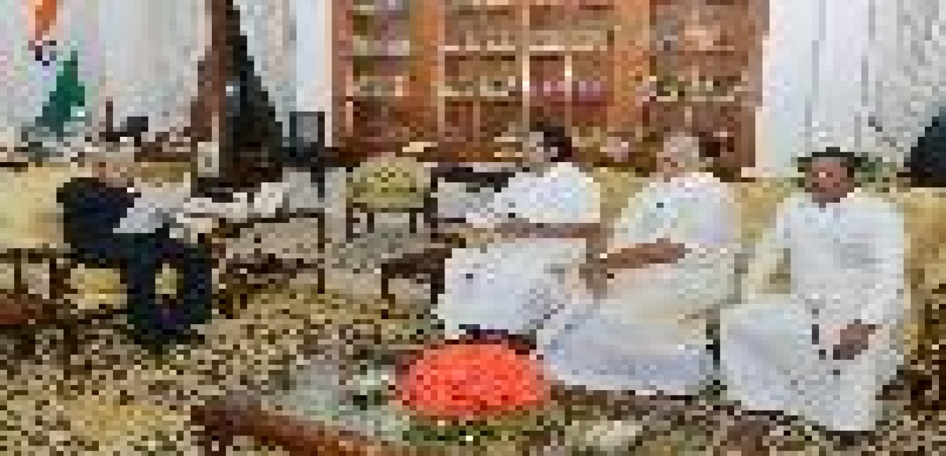 The President of India, Shri Pranab Mukherjee meeting with Shri Shahabuddin Ahmed, Bangladeshi painter along with his daughter Ms. Chitro Shethi Shahabuddin, at Rashtrapati Bhavan on February 20, 2017.