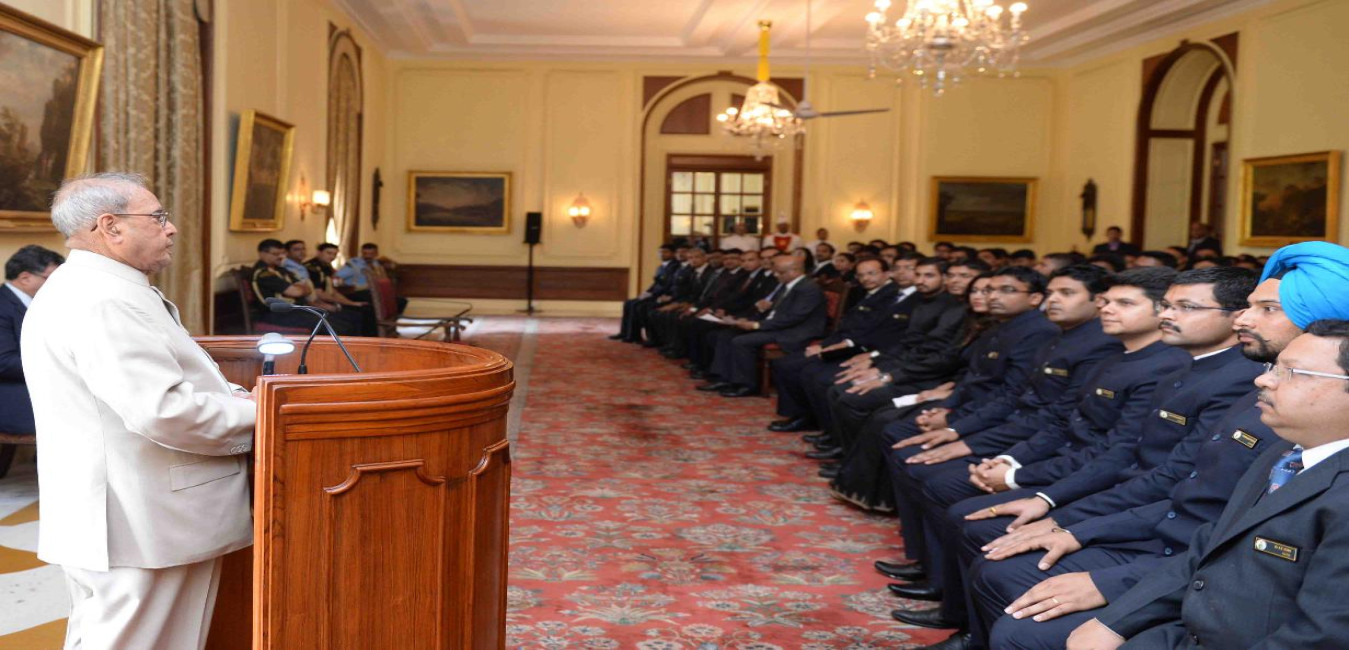 The President of India, Shri Pranab Mukherjee interacting with the Probationers of Indian Ordnance Factories Service (IOFS-2016 I & II Batches) from National Academy of Defence Production, Nagpur and Office Trainees of Indian Telecom Service (ITS) from National Telecommunications Institute for Policy Research, Innovation & Training (NTIPRIT) Ghaziabad, at Rashtrapati Bhavan on November 22, 2016.