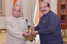 The President of India, Shri Pranab Mukherjee meeting with Dr. Ravindra Bhattacharya, Secretary General, Royal Life Saving Society of India, Kolkata, at Rashtrapati Bhavan on November 22, 2016.