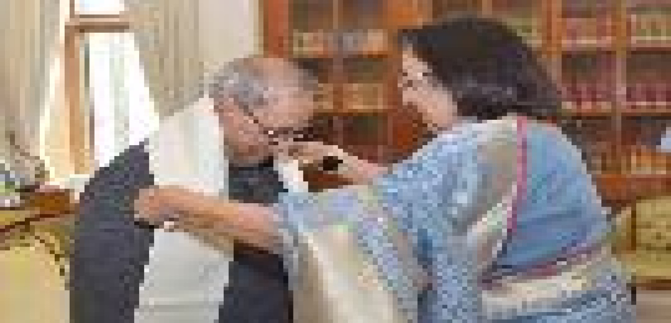The President of India, Shri Pranab Mukherjee meeting with Shri Aloke Nandi, President, Dantan Gramin Mela Committee, Paschim Medinipur, at Rashtrapati Bhavan on August 25, 2016.