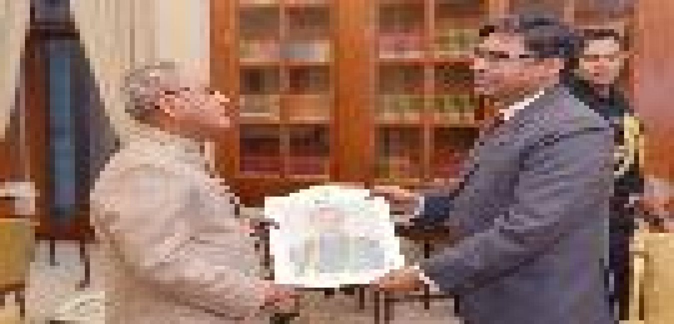 The President of India, Shri Pranab Mukherjee meeting with Shri Gautam Mukhopadhyay, former Ambassador of India to Myanmar, at Rashtrapati Bhavan on August 11, 2016.