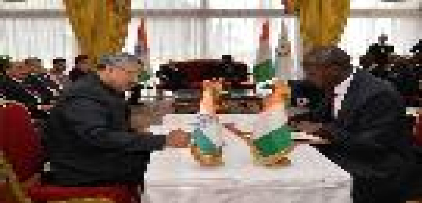 The President of India, Shri Pranab Mukherjee and the President of the Republic of Cote d lvoire, H.E. Mr. Alassane Ouattara witnessing the Signing of Agreements (EXIM Bank) between India and Republic of Cote d lvoire, at Presidential Palace, in Abidjan, Republic of Cote d lvoire on June 14, 2016.