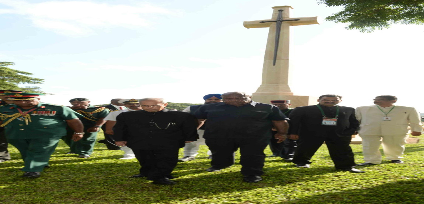 The President of India, Shri Pranab Mukherjee laying wreath at Bomana War Cemetery, at Port Moresby, in Papua New Guinea on April 28, 2016.