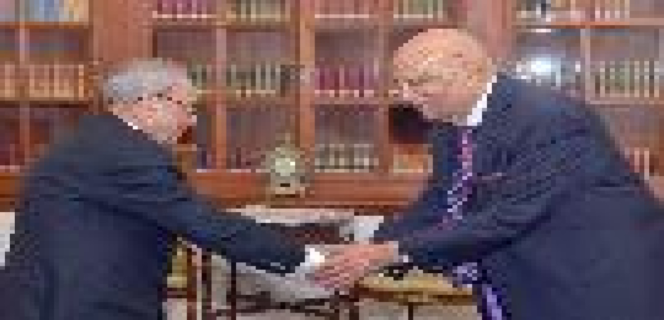 The President of India, Shri Pranab Mukherjee meeting with Lord Swraj Paul, at Rashtrapati Bhavan on March 30, 2016.