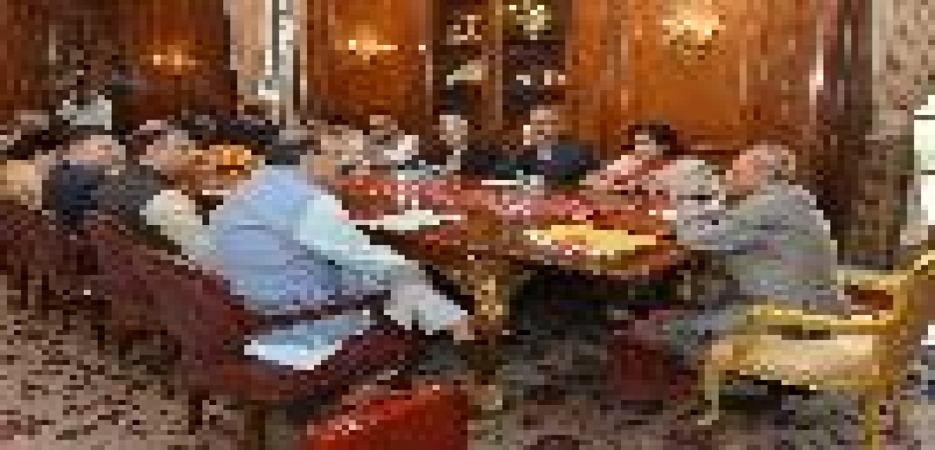 The President of India, Shri Pranab Mukherjee meeting with Smt. Savitri Jindal, Chairperson Emeritus, OP Jindal Group alongwith her son Shri Rattan Jindal, at Rashtrapati Bhavan on March 02, 2016.