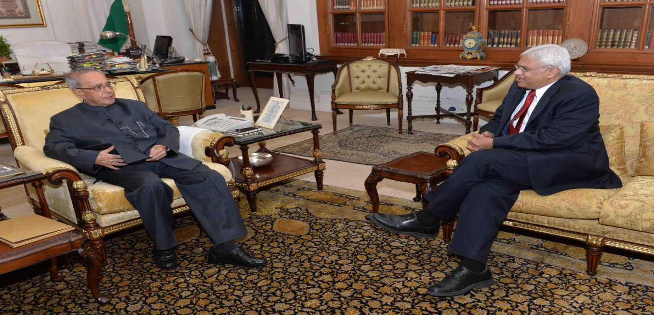 The President of India, Shri Pranab Mukherjee meeting with the Governor of Jammu & Kashmir, Shri N.N. Vohra, at Rashtrapati Bhavan on February 11, 2016.