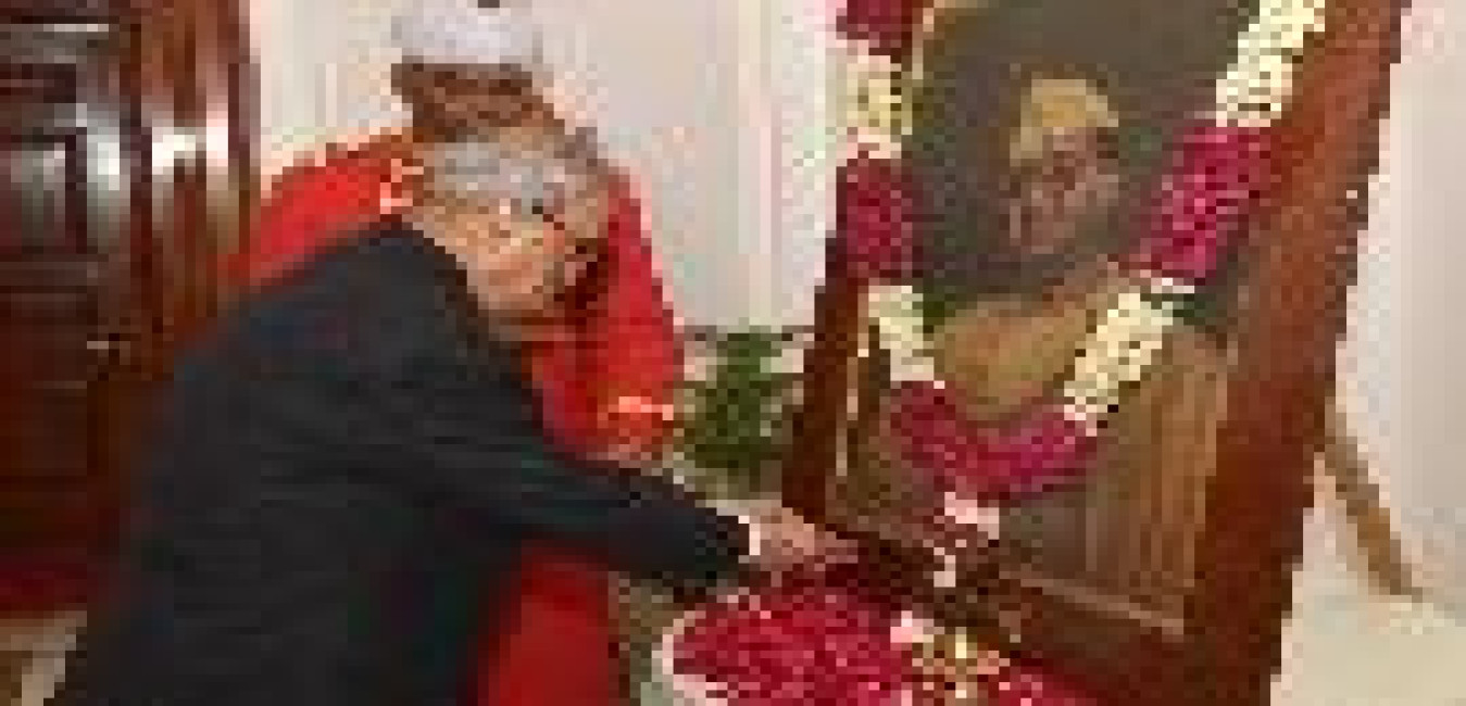 The President of India, Shri Pranab Mukherjee paying floral tributes at the portrait of Netaji Subhash Chandra Bose on the occasion of his Birth Anniversary, at Rashtrapati Bhavan on January 23, 2016.