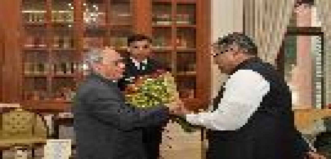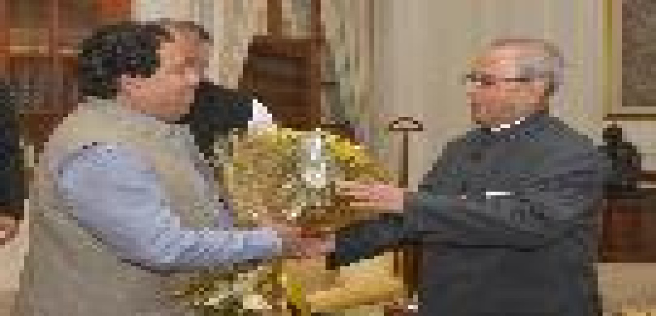 The President of India, Shri Pranab Mukherjee being greeted by Shri Krishna Chaudhary, DG, ITBP, on the occasion of his 80th birthday, at Rashtrapati Bhavan on December 11, 2015 .
