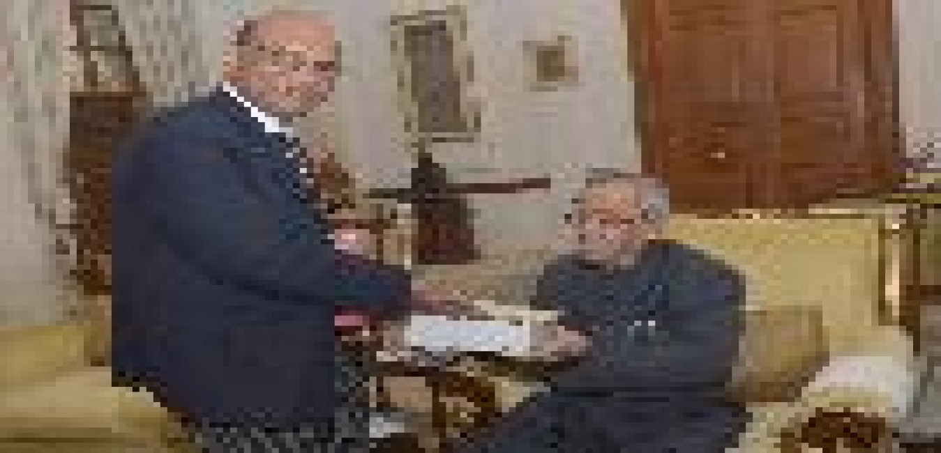 The President of India, Shri Pranab Mukherjee being greeted by the Vice-President of India, Shri Mohd. Hamid Ansari, on the occasion of his 80th birthday, at Rashtrapati Bhavan on December 11, 2015 .