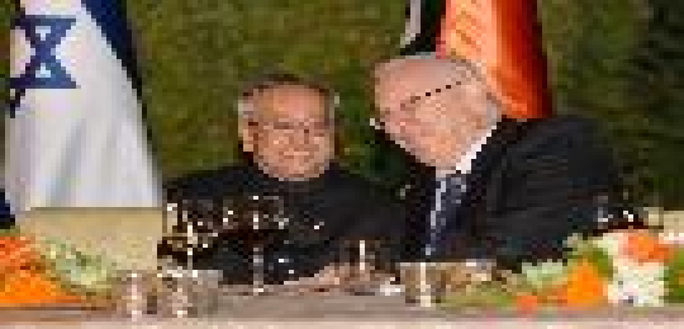 The President of India, Shri Pranab Mukherjee accompanied by the Isreaeli President, Mr. Reuven Rivlin visits Yad Vashem (World Centre for Holocaust Research) and paying homage at the Memorial, Mount Herzl, Jerusalem in Israel on October 13, 2015.