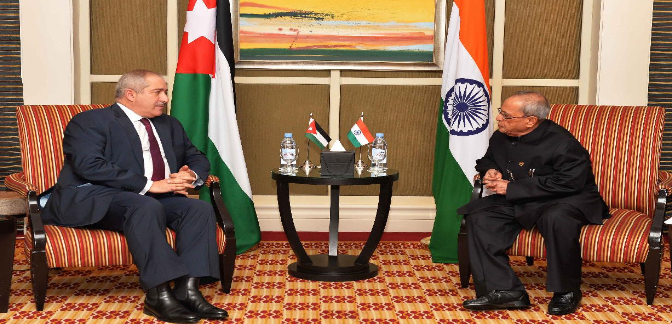 The President of India, Shri Pranab Mukherjee at Restricted Talks with HE Dr. Abdullah Ensour, Prime Minister of Jordan, at Government Office Complex, at Amman in Jordan on October 11, 2015.