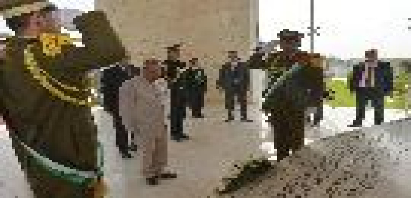 The President of India, Shri Pranab Mukherjee laying wreath at Mausoleum of former Palestinian President, late Mr. Yasser Arafat, at Ramallah in Palestine on October 12, 2015.