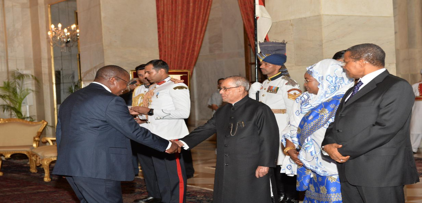 The President of India, Shri Pranab Mukherjee receives the President of the United Republic of Tanzania, Mr. Jakaya Kikwete and Mrs. Salma Kikwete, during Ceremonial Reception, at Rashtrapati Bhavan, in New Delhi on June 19, 2015.
