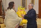 The President of India, Shri Pranab Mukherjee meeting with the Minister for Minority Affairs, Dr Najma Heptulla on the occasion of his Birthday at Rashtrapati Bhavan in New Delhi on Dec 11, 2014