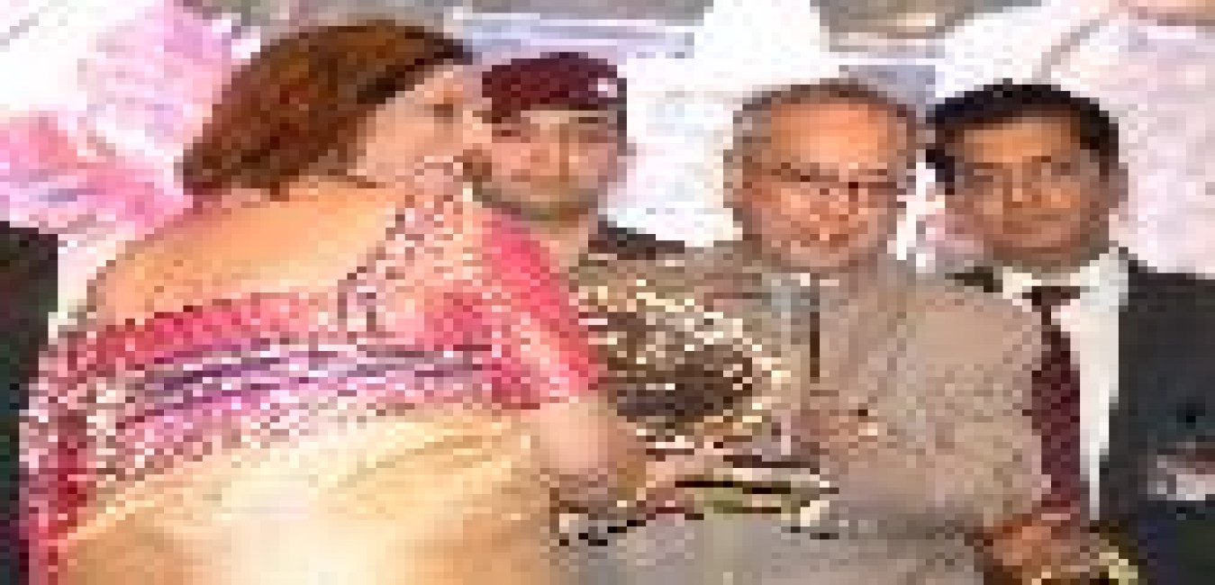 The President of India, Shri Pranab Mukherjee presenting the Country's Highest Civilian Award Bharat Ratna to Eminent Scientist Professor, C N R Rao and Legendary Cricketer, Shri Sachin Tendulkar at Durbar Hall of Rashtrapati Bhavan in New Delhi on Feb 04, 2014